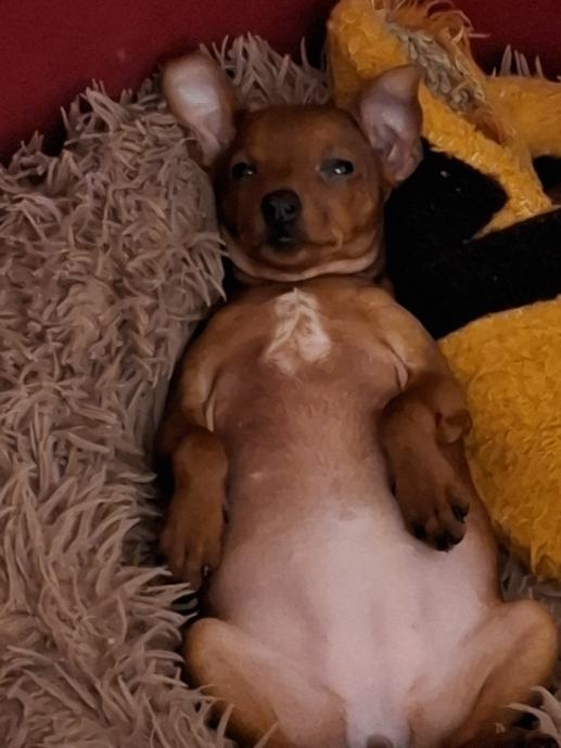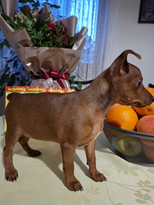 Ženka patuljastog pinča, čipirana, cijepljena s putovnicom EU, stara 3 mjeseca , vrlo kvalitetna, lijepa i razigrana nestrpljivo čeka novi dom.