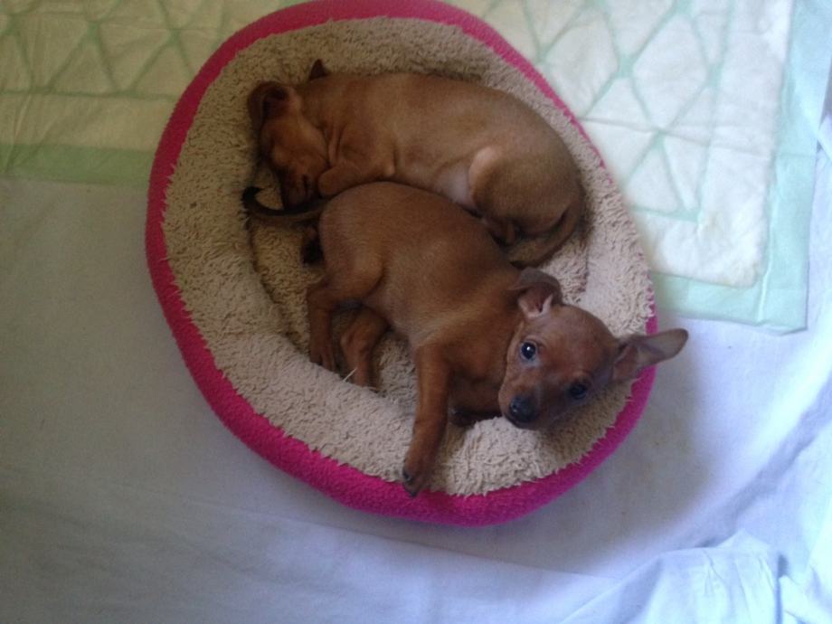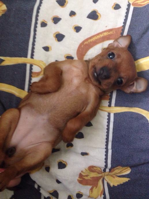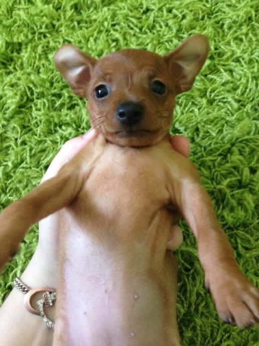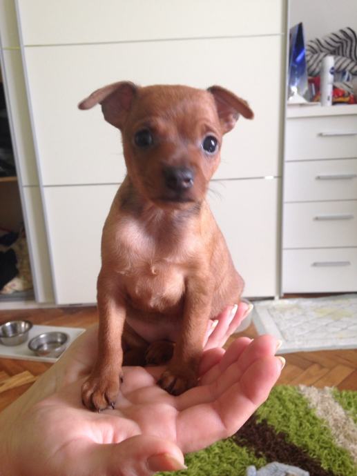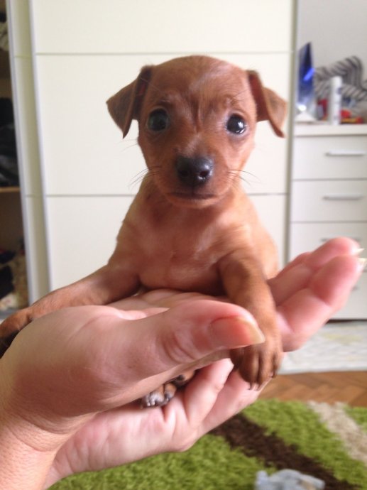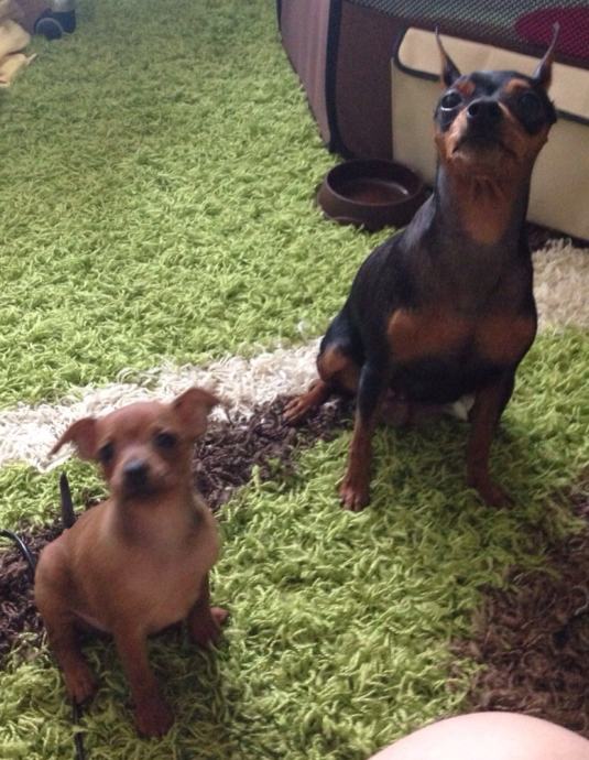 Predstavljamo vam leglo čistokrvnih patuljastih pinceva,okocenih 25.4. U leglu su dvije smeđe curice. Mama je iz vrhunske uzgajivacnice (visoka 26 cm,teška 2,7 kg). Na prodaju je jedno štene(slika br.1). Stene ce biti ocisceno od unutarnjih parazita i cijepljeno. Za novi dom bit ce spremna krajem 6.mjeseca.Štene će biti jako malog rasta kao mama. Za ostale informacije kontaktirajte me na mobitel (viber) ili mail.