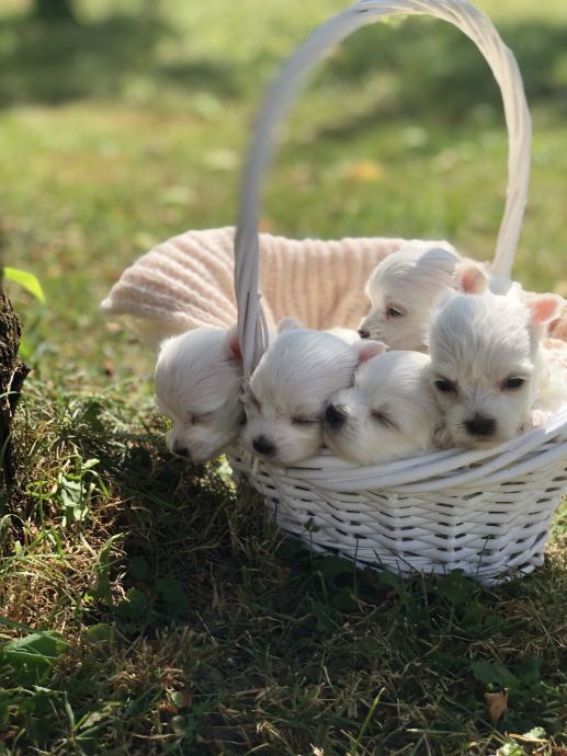 Dostupni štenci maltezera, pet curica. Moguć prijevoz za Zagreb, Istru i Dalmaciju te Sloveniju.