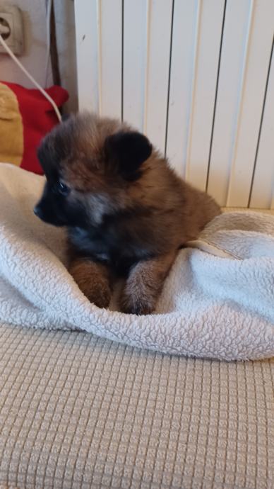 Sivo smeđa cura sa crnom njuškicom, čupava slobodna za novi dom. .Pia jede suhe kekse i mokru hranu. Težina kad odrastu za cure je do 5 kg. Rođena 01.10.2025. Očiščena od nametnika, čipirana sa EU putovnicom. Uzgoj prijavljen u Ministarstvu.