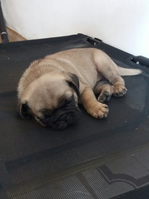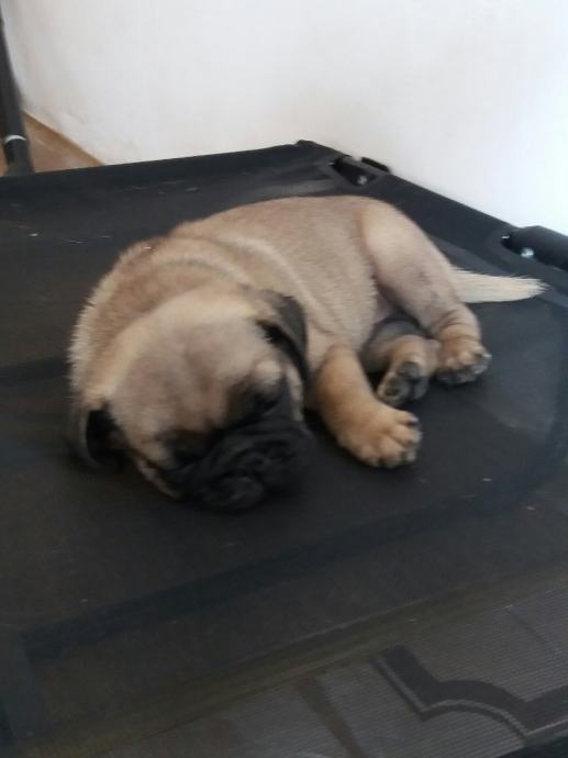 Prodaje se cura štenca mopsa . Okočena 02.07. više puta očišćena od parazita. Naučena je na djecu,jako je zaigrana. Voli se puno maziti i igrati.