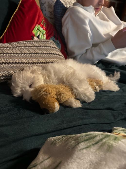 Prodajem slatko Maltipoo štene staro 2 mjeseca. (Žensko), bijelo-krem boje s valovitom, mekom dlakom. Štene je mikročipirano i sve je uredno dokumentirano. I cijepljena je prema dobi. Ima putovnicu za kućne ljubimce (pet passport).