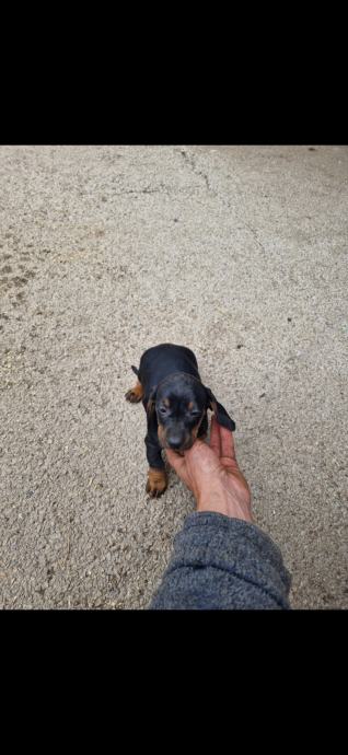 Prodajem štence čistokrvnog kratkodlakog jazavcara,sa smeđim paležom,otac i majka čiste genetike