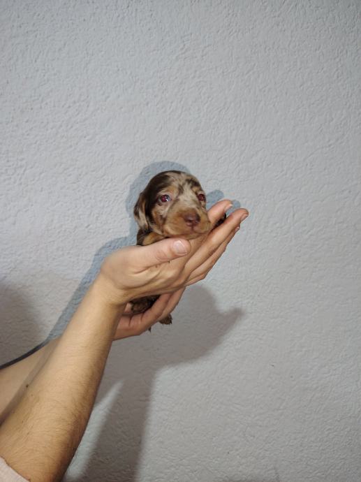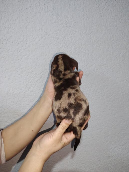 Oba spola. Prelijepe dlake i boje Za preuzimanje kraj siječnja/26.. Biće cijepljeni x 1, S Eu passport om s odjavom na vas se dodatno placa 35 e . Preslatki.Mama i tata patuljasti. .