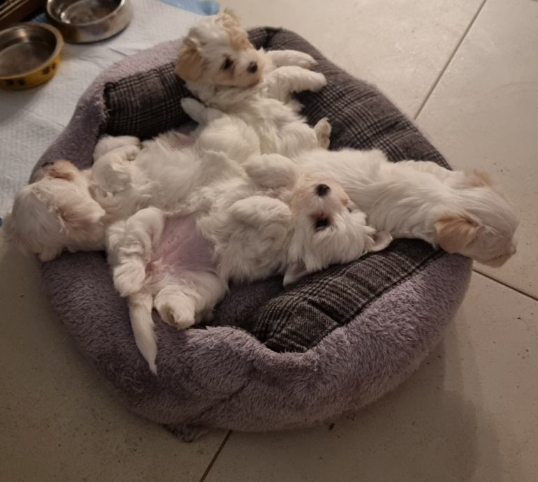 Maleni psići vrlo su umiljati i razigrani. Trenutno su zainteresirani za međusobnu igru, trče po podu i igraju se sa svime što se nađe pred njima. Znaju čak i lajati, a ako nešto nije kako treba malo i zarežati.