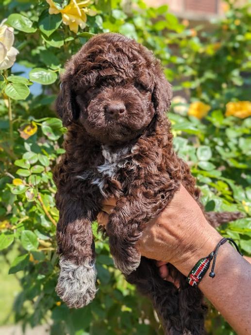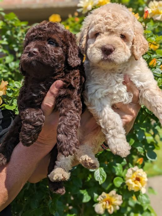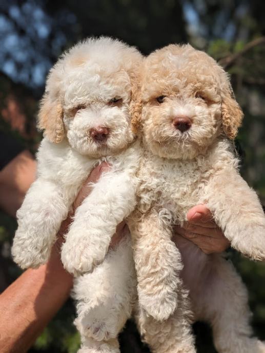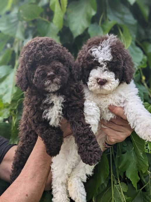 lagotto stenci, vrhunski svh boja, stari 2,5 , 3 i meseca oba pola,otac sampion, ima genetske testove i snimke kukova i laktova, oba pola , revakcinisani, sa dostavom u Istru, obuceni psi za tartufe od 3 do 6 godina cena 1200e, +38163543232
