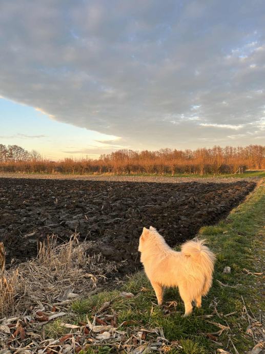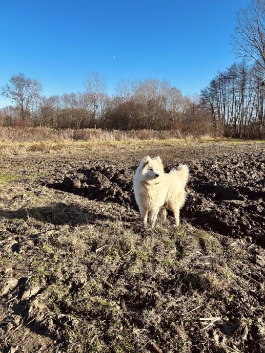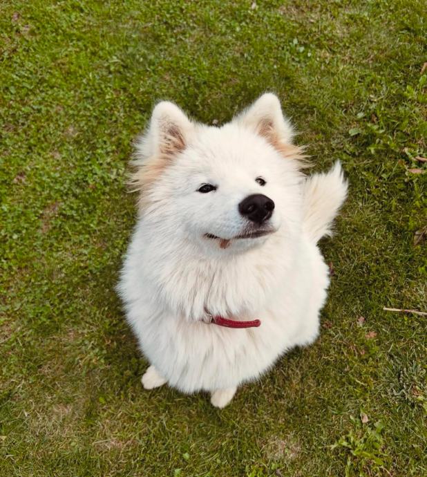 9mjeseci, ženka samojeda, nije kastrirana. Uredno procjepljenja i čipirana. voli igru loptom i šetnje. U šetnji nije agresivna prema drugim psima već pristupa s zanimacijom. Voli se maziti. Generalno dobroćudan pas.