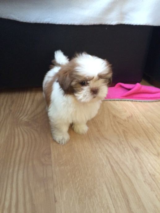Shih tzu čistokrvno žensko štene starosti dva mjeseca, izuzetno lijepo i drago. Roditelji štenaca su malog uzrasta težine oko 4,5 kilograma. Štene je nekoliko puta tretirano protiv crijevnih parazita. Ima prekrasnu dugu dlaku s prekrasnim obilježjima svoje rase. Štene je socijalizirano, naučena na djecu, ljude i na kućni red, a nuždu u kući obavlja na prostirku.