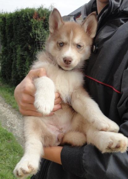 Prodaje se jedna mala haskica, mrkog pogleda, ali divne naravi! Oči ledeno plave, tamno smeđa boja! Čistokrvna, roditelji odličnog izgleda i zdravlja!