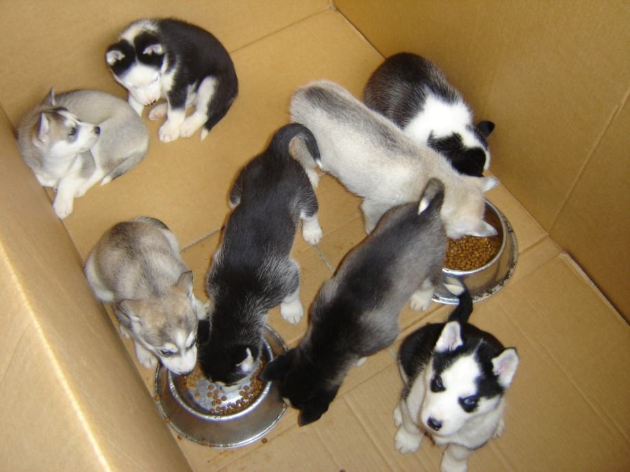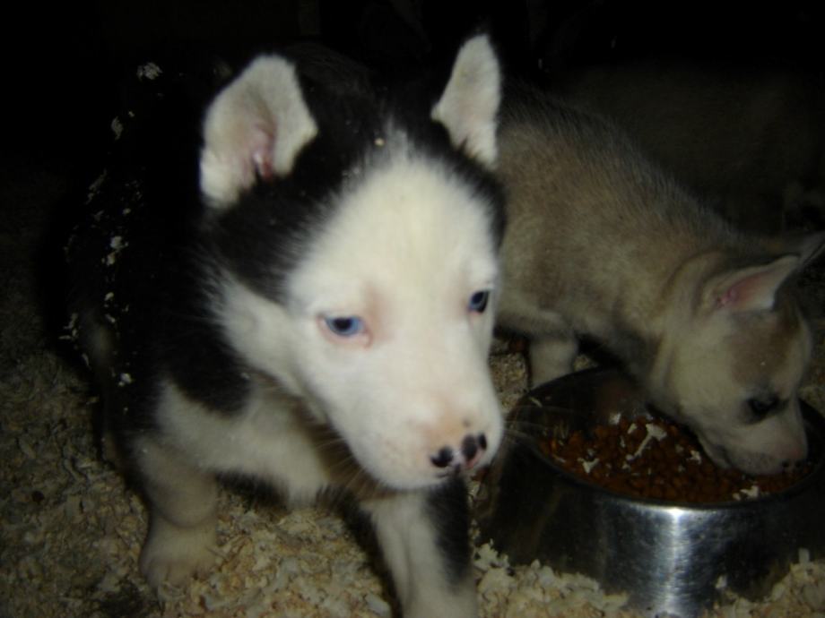 čistokrvni, crno-bijeli i sivo-bijeli sa plavim očima,