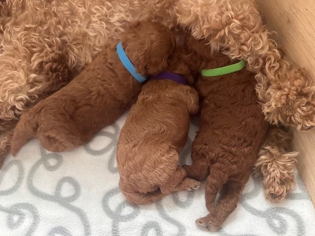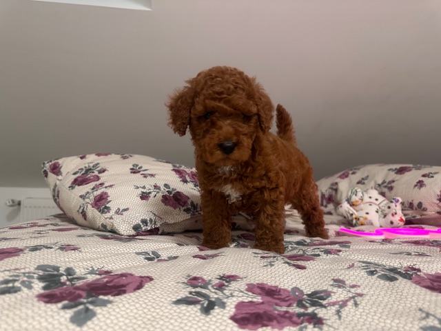 Primamo rezervacije za štence srednje apricot pudle, oštenjeni 16.11.2024., u leglu je jedna curka i dva dečka.