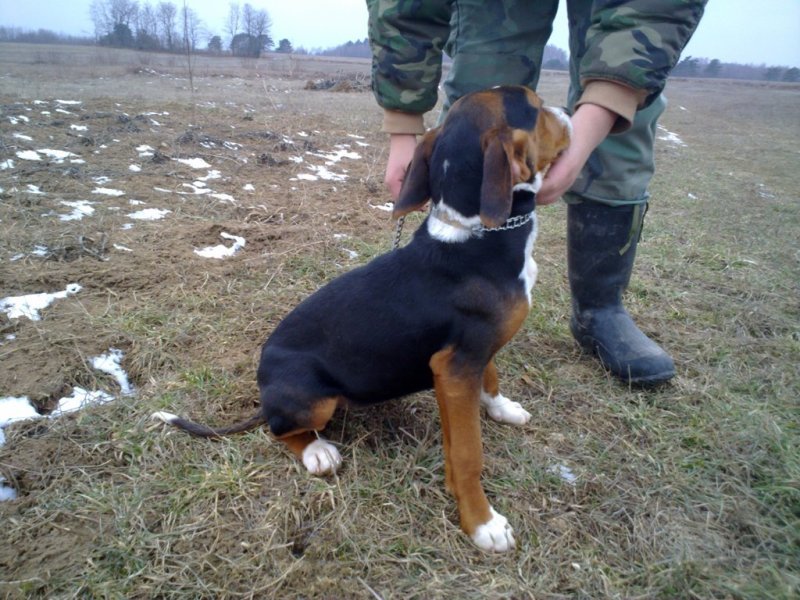 Prodajem ženku trobojnog goniča od roditelja izvrsnih u radu i eksterijeru.