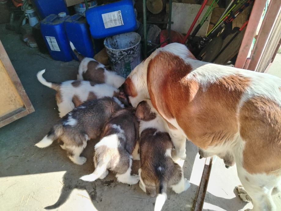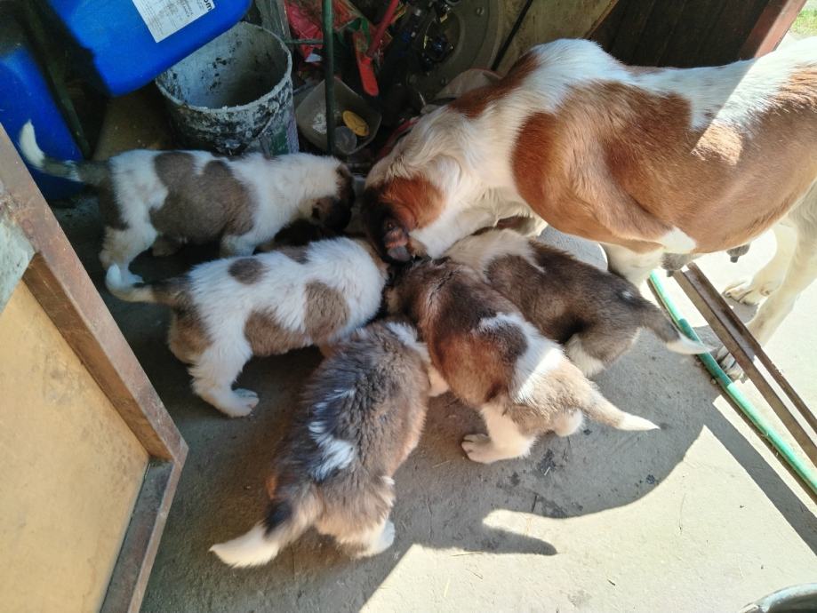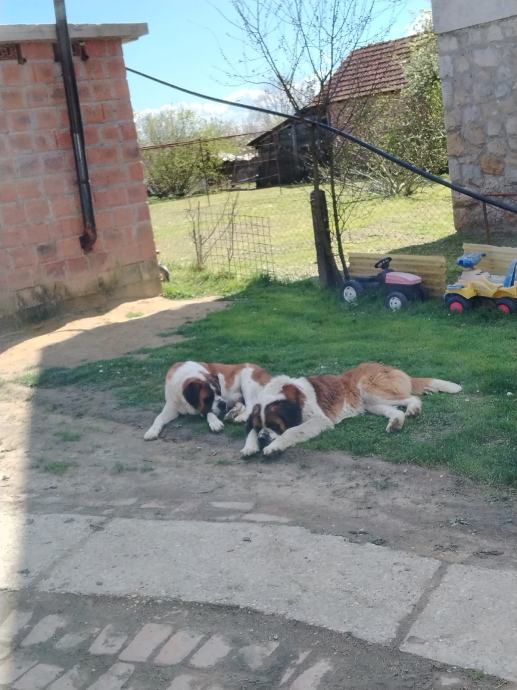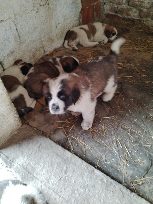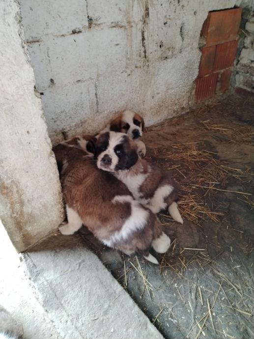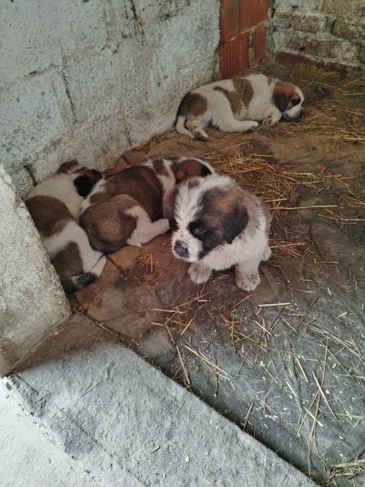 Prodajem štence bernardinca, oštenjeni 1.2.2024 pet muških, sami jedu, očiščeni od parazita, roditelji prisutni, cijena po komadu 150€,