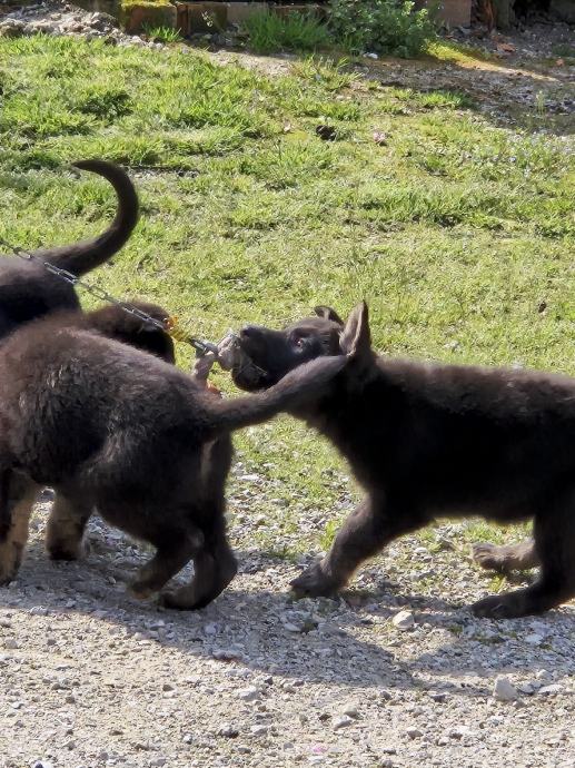 Štenci njemačkog ovčara radna linija dva puta očišćeni od nametnika i cijepljeni protiv zaraznih bolesti .