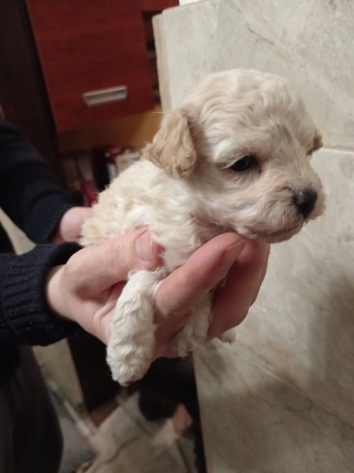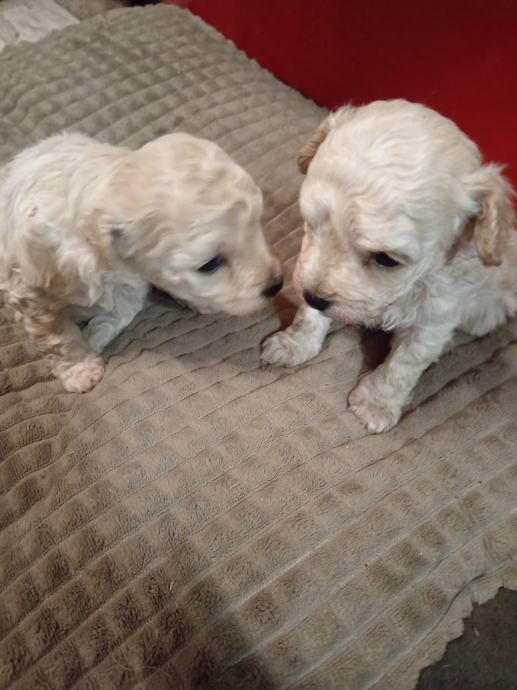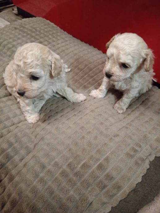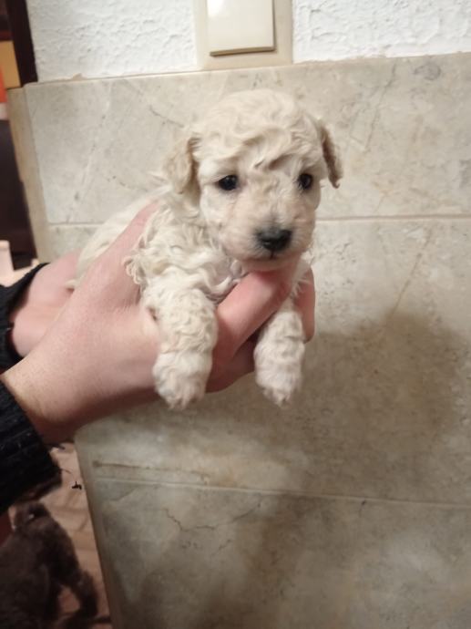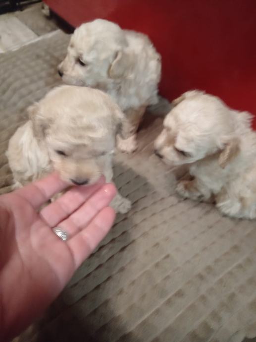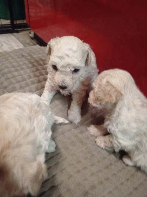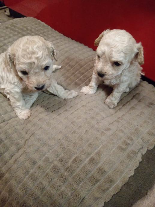 Prodajem štence toy pudli bez rodovnia,uzgoj prijavljen pri Ministarstvu veterinarstva,majka bijela u nasem vlasnistvu,otac svijetli aprikot u vlasnistvu nasih prijatelja. U eglu je jedan mužjak ( rezerviran) i tri ženke. Psi au zdravi i pod redovitim veterinarskim nadzorom,za preuzimanje ce biti nakon navrsenih 8 tjedana. Prije preuzimanja bit ce cijeplje i,čipirani s EU putovnicom i očišćeni od parazita,naviknuti na češljanje i higijenu. Majka i otac na slikama. Svakom kupcu darujemo opranicu, povodac i početni paket hrane za štene te smo uvijek na raspolaganju za svaki savjet i pomoć. Psi su naše kućno legmo i mogu se vidjeti u svakom trenutku. Za sve daljnje ipite atojimo na raspolaganju na broju 091/9223294 i na 091/7310 163