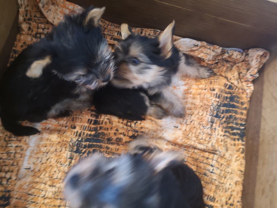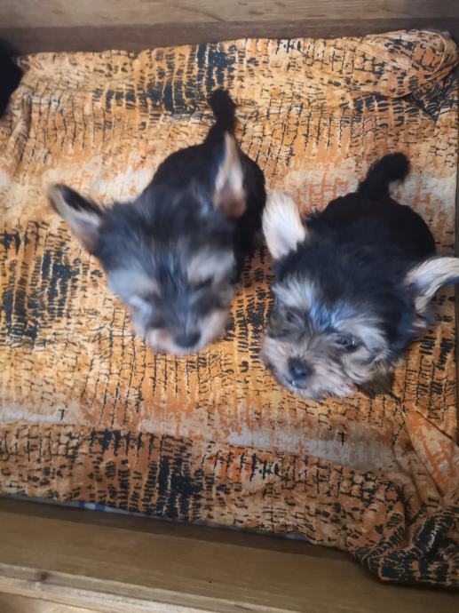Štemci yorkići stari 8 tjedana prodaju se povoljno oba roditelja prisutna u leglu dvije cure i jedan dečko nalaze se Zagreb Dubrava mob 098 9332 899