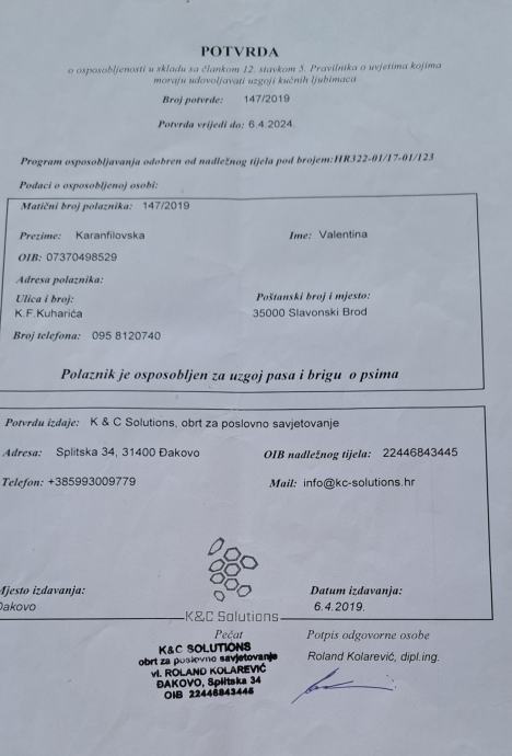 Dozvola veterinarske inspekcije za uzgoj pasa