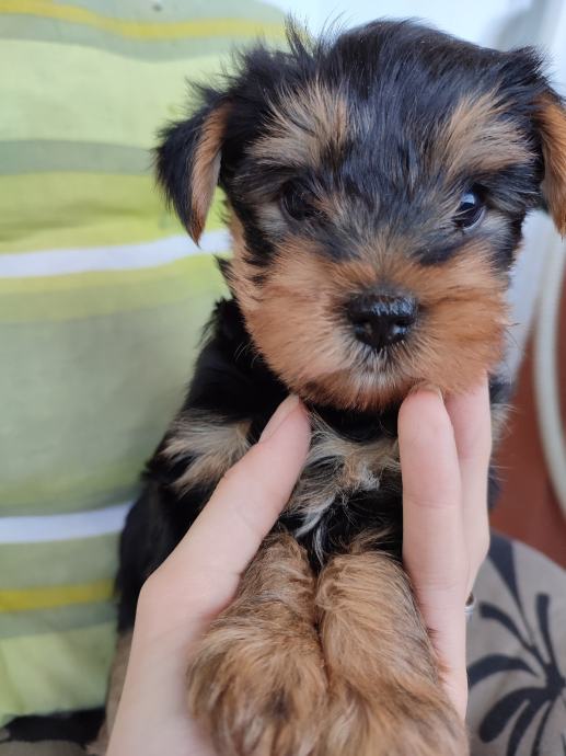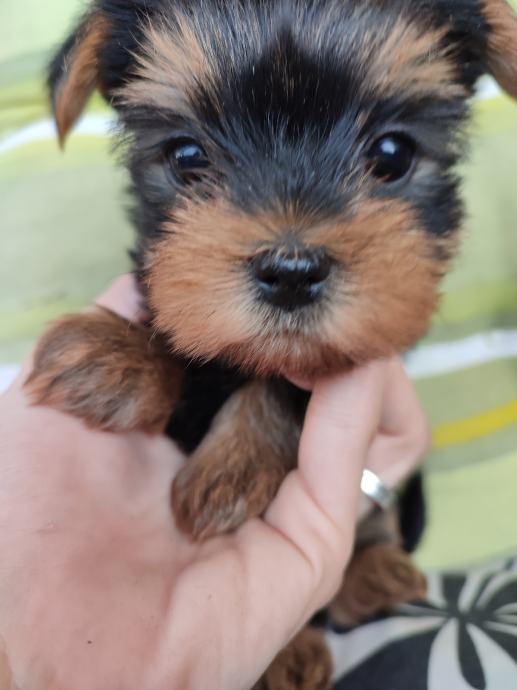 Prodajem štence yorkshirski terrier mini.Psići su iz vlastitog uzgoja,naučeni obavljati nuždu na plahtici u kući,cijepljeni,čipirani,EU putovnica,očišćeni od unutarnjih i vanjskih parazita.Yorkshirski terrier mini su pogodni za stan,djecu i alergicare pošto ne puštaju dlaku te su hipoalergijski psi,jako razigrani i veseli.Tata ima 1,3 kg,mama 2,0 kg,te će psići biti jako malog rasta.Za sve upite zvati na broj 0977678614
