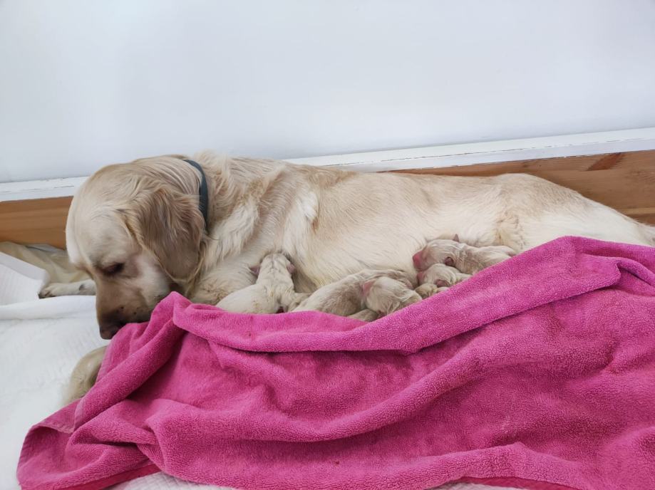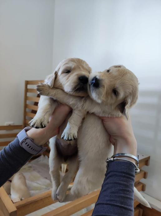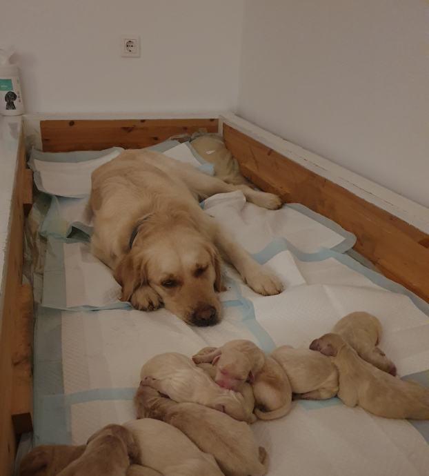 Primamo rezervacije štence zlatnog retrivera, oštenjeni 25.1.2022. Ženka je naš kućni ljubimac, ima 2.5 god te joj je ovo prvo i jedino leglo (mužjak je starosti nešto manje od 3 god, par mjeseci stariji od nje). Parila se sa zlatnim retriverom sa slike. Dlaka je krem boje. Ženka je porijeklom iz okolice Zagreba, a mužjak iz okolice Pazina. Ukoliko imate pitanja slobodno pošaljite poruku na broj 0994089624 (viber, whatsap). Kako budu rasli Vam možemo i više slika slati. Štenci će biti očišćeni od parazita i nametnika dva puta. Moguća dostava do Zagreba u cijeni.