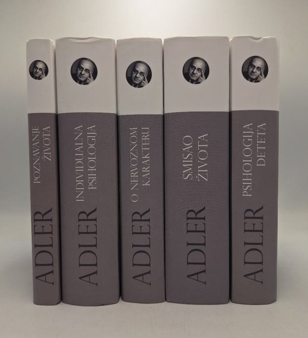 Alfred Adler izabrana djela I-VKomplet sadrži naslove:Psihologija detaSmisao životaO nervoznom karakteruIndividualna psihologijaPoznavanje životaAlfred Adler (Rudolfsheim-Fünfhaus, 7. veljače 1870. – Aberdeen, Škotska, 28. svibnja 1937.), austrijski psihologPo zvanju je bio liječnik. Isprva je pristaša Freudove psihoanalize, ali se 1912. odvaja od Freuda i stvara vlastitu školu individualne psihologije, psihoterapijskog smjera i teorije prema kojoj je osnovni motiv čovjekova djelovanje težnja za dominacijom nad okolinom, odnosno volja za moći. Ta je težnja, prema Adleru, urođena, a ako je čovjek ne može zadovoljiti postaje nezadovoljan samim sobom, te se javlja kompleks inferiornosti. Drugi središnji pojam te teorije je: da bi se neugoda i bespomoćnost uklonile, pojedinac razvija kompenzacijske postupke. Stranica: 413+576+381+582+203Dimenzije: 15x21Jezik: BeogradPismo: LatinicaStanje: Nova knjigaUvez: TvrdiGodina: 2017
