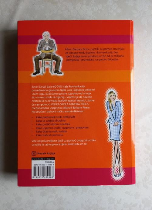 Jeste li znali da je 60-70 % naše komunikacije posredovano govorom tijela, a ne isključivo jezikom? Osim toga, ljudi često govore suprotno od onoga što stvarno misle ili osjećaju. Vrijeme je da naučite čitati misli na temelju ljudskih gesti i kretnja. U tome će vam pomoći VELIKA ŠKOLA GOVORA TIJELA, međunarodna uspješnica Allana i Barbare Pease. Na stručan i duhovit način, autori otkrivaju:
