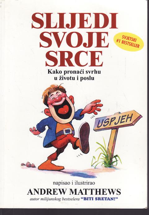 SLIJEDI SVOJE SRCE je knjiga koju svakako morate pročitati. Pisana je kao autokarta vlastite sreće. Uči Vas kako pronaći svrhu u životu i poslu. Autor knjige Andrew Matthews je predavač i umjetnik. U knjizi nudi čitaocu niz duhovnih bisera koji se lako slijede, a sve je popratio vrlo duhovitim karikaturama čime vam pomaže da preuzmete odgovornost za svoju vlastitu sreću. Ukratko, knjiga je puna mudrosti i dubokih poruka iznjetih na veseo i lagan način. Lako se čita, lakše razumije i još lakše slijedi. Preporučujemo je svima koji žele znati više :