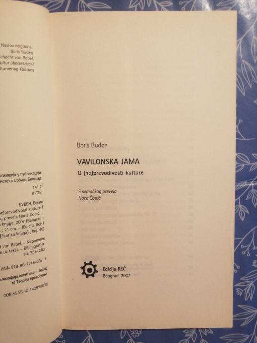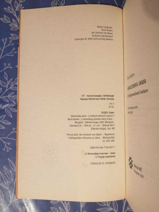 Boris Buden – Vavilonska jama : O (ne)prevodivosti kulture (B109)