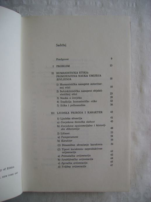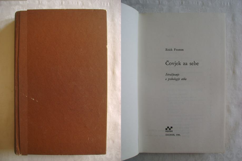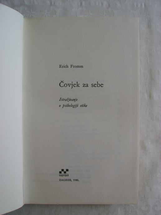 Erich Fromm - Čovjek za sebe; Istraživanje o psihologiji etike - izdavač Naprijed, Zagreb 1980. godine, 15 x 22 cm, tvrdi uvez, 237 stranica.