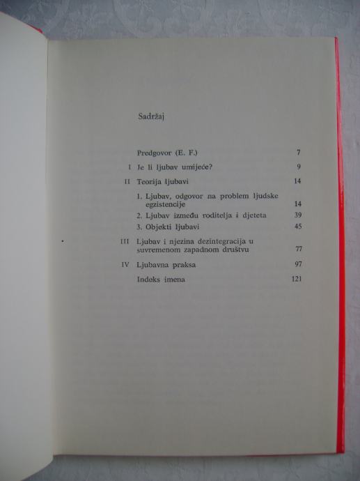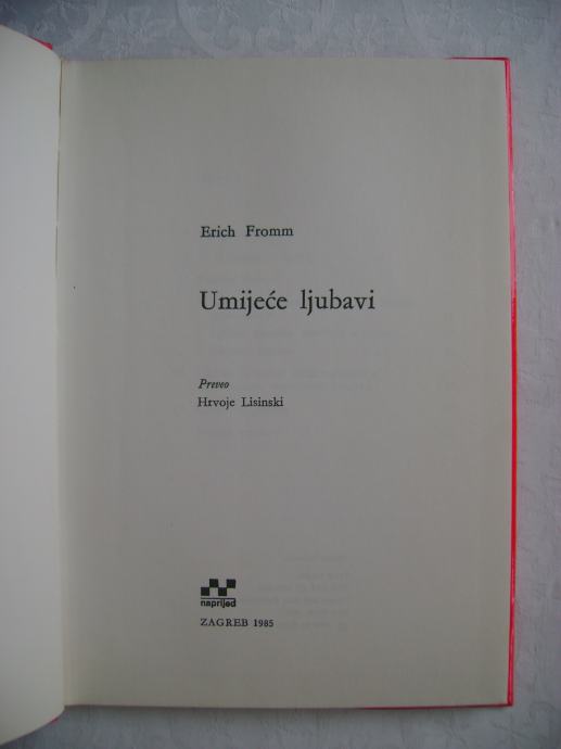 Erich Fromm - Umijeće ljubavi - izdavač Naprijed, Zagreb 1985. godine, 15 x 21 cm, tvrdi uvez i papirnati omot, 119 stranica.