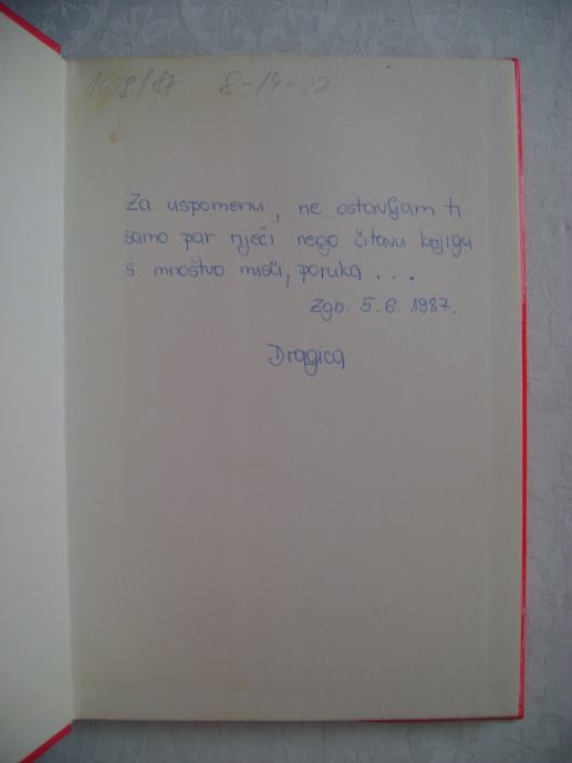 Knjiga je odlično očuvana, kao nova, na predstranici ima poveću posvetu - stanje je vidljivo na slikama.