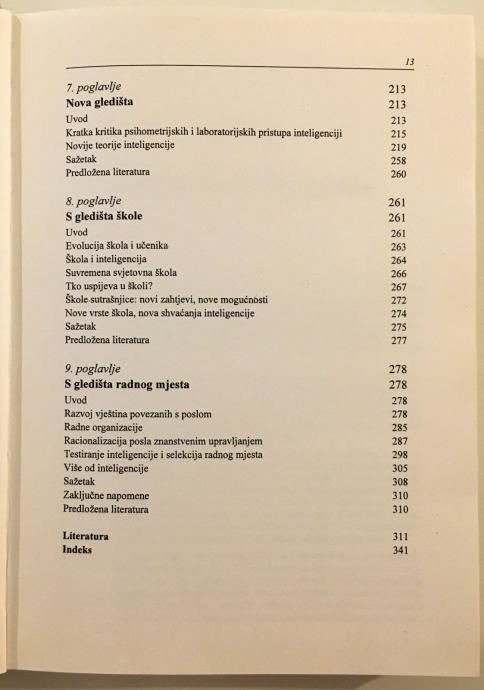 U knjizi se pokušava odgovoriti na sklop klasičnih pitanja: Kakva je struktura intelekta? Da li se inteligencija nasljeđuje ili je intelektualni razvoj pojedinca pod utjecajem šire društvene okoline u kojoj on odrasta i živi? Kako se inteligencija mijenja tijekom života? Utječe li na nju formalno školovanje? U kojoj mjeri zvanje i radno mjesto utječu na očuvanje intelektualnih potencijala? Postoje li razlike u intelektualnim dometima s obzirom na spol, dob, rasnu, kulturalnu i generacijsku pripadnost? Zašto pitanja o inteligenciji izazivaju toliko žuči i društvenih nesporazuma? Je li u ovom području zabilježen ikakav napredak i uspjeh? Svodi li se sve samo na konstataciju da zanimanje za inteligenciju ne prestaje? Ova se knjiga, s obzirom na dinamizam njezina sadržaja, čita poput romana i ne treba sumnjati da će upravo zbog te svoje kvalitete naći širu čitalačku publiku. Teorija o strukturi ljudskog intelekta Howarda Gardnera neposredna je preteča konceptualizacije emocionalne inteligencije."