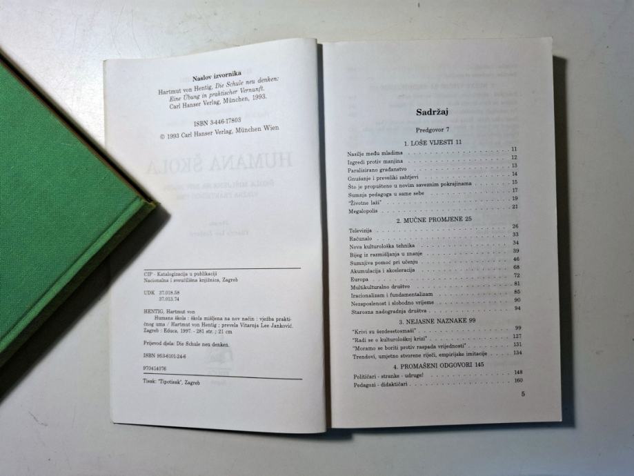 Hartmut von Hentig. Prevela Vitarnja Lee Janković. Prijevod djela: Die Schule neu denken : eine Ubung in praktischer Vernunft.