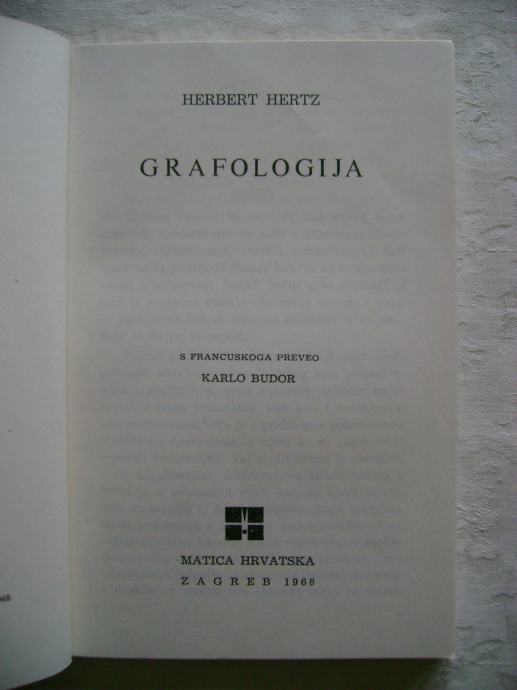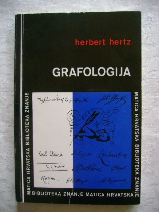 Herbert Hertz - Grafologija - izdavač Matica hrvatska, Zagreb 1968. godine, 11 x 17 cm, meki uvez, 133 stranice. Knjiga je iznutra odlično očuvana, korice su vrlo dobre - stanje je vidljivo na slikama.
