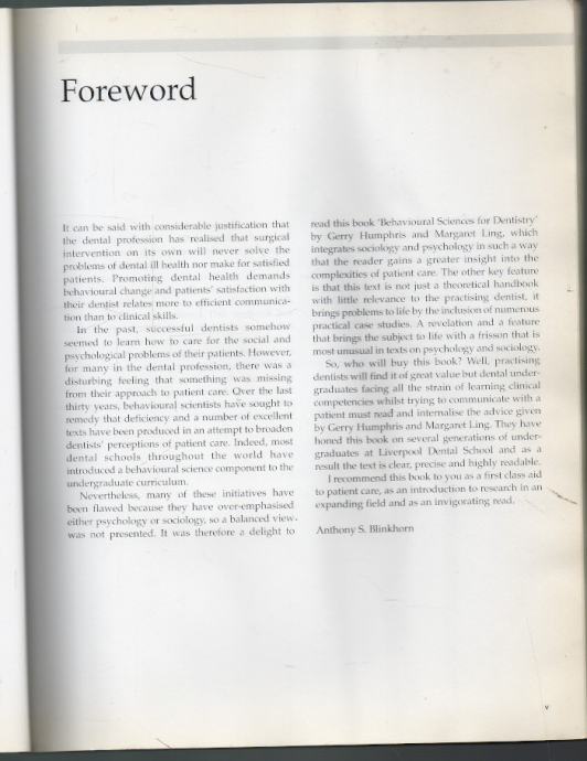 Humphris, Gerry | Ling, Margaret - Behavioural sciences for dentistry