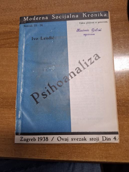 Ivo Lendić: Psihoanaliza (MOSK, sv. 33-34.) 1938.