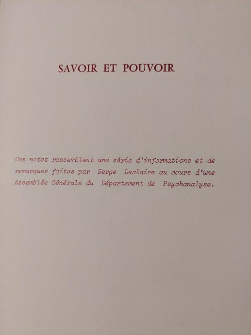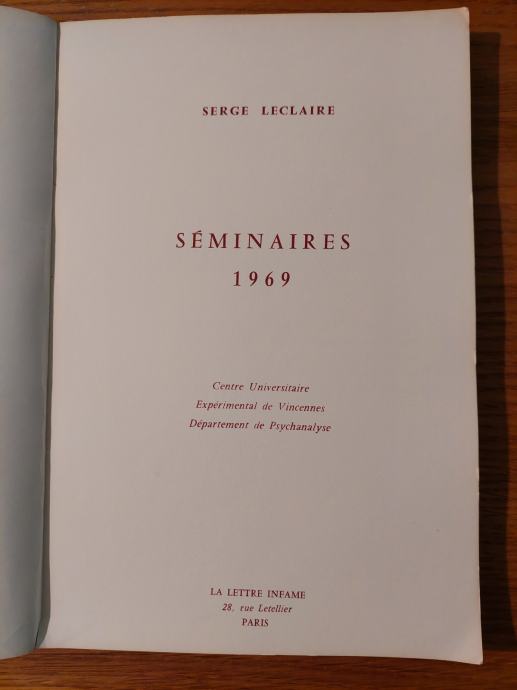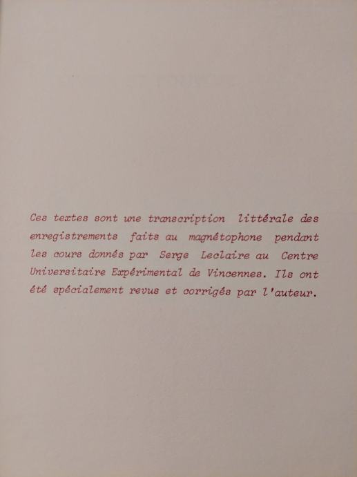 SÉMINAIRES 1969 - Serge LECLAIRE / La psychanalyse à Vincennes