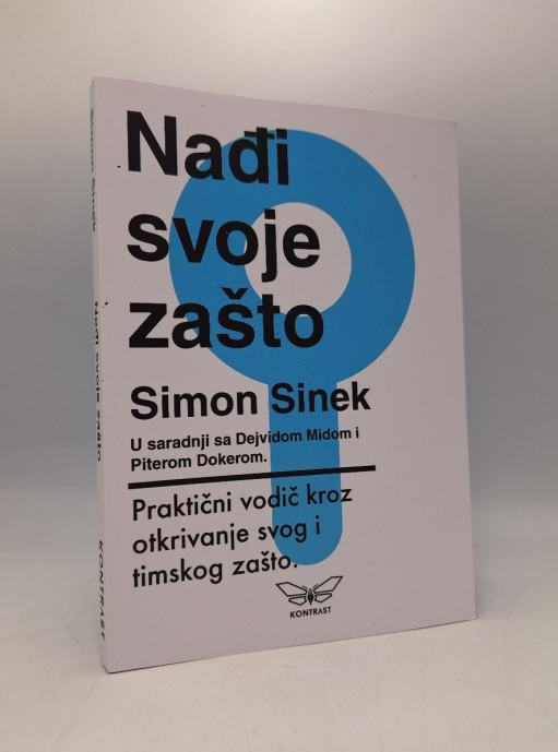 Simon Sinek: Nađi svoje zašto: praktični vodič kroz otkrivanje svog i timskog zaštoSvojom prvom knjigom, Počnite sa zašto, Simon Sinek stvorio je globalni pokret koji pomaže ljudima da otkriju svrhu svega što rade u životu. Osim toga, njegove knjige, predavanja i misli pomažu pojedincima da bolje osmislite svoje osobne živote i karijere. Međutim, budući da nije bilo lako svima praktično primijeniti njegove ideje u svim tim područjima, nastala je knjiga "Pronađi svoj zašto", praktični vodič kroz najvažnije korake prema postizanju glavnog cilja - otkrivanju svog zašto.Ova knjiga započinje uputama za potragu za osobnom svrhom i nastavlja vam pomagati da ta otkrića primijenite na svoju zajednicu, poslovno okruženje, organizaciju... Detaljne i jasne upute koje vas vode kroz svaku fazu ove potrage također odgovaraju na neka od najčešćih pitanja: Što ako se moj zašto podudara sa zašto konkurencije? Možemo li imati više od jednog zašto? Ako se moj zašto ne podudara sa stvarima koje radim u životu, što i kako bih trebao promijeniti? Pomoći će vam da iskoristite sva snažna otkrića koja je Sinek napravio, kako biste inspiraciju i motivaciju koju ste otkrili u sebi prenijeli onima oko sebe.Stranica: 183Dimenzije: 14x20Jezik: BeogradPismo: LatinicaStanje: Nova knjigaUvez: MekiGodina: 2018