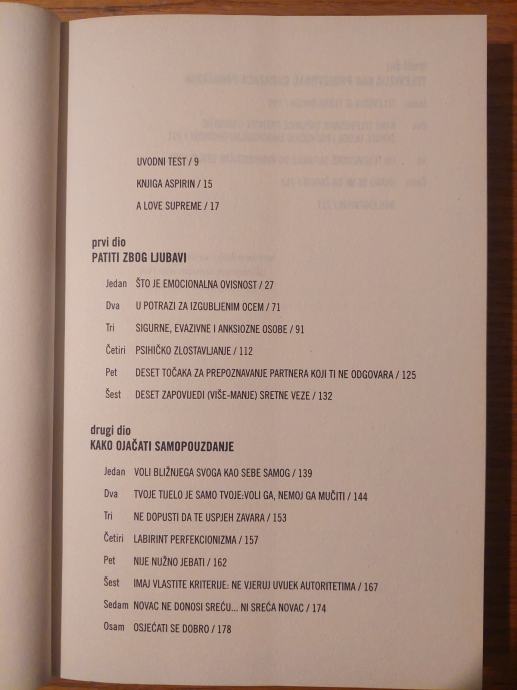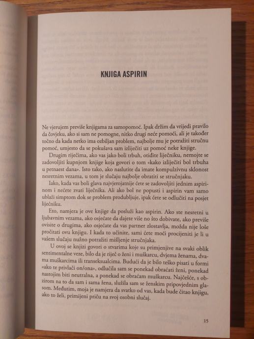 Lucia Etxebarria pomiješala je psihoanalizu, psihologiju, filozofiju, sociologiju, književnost, postfeminističku kritiku, autobiografski diskurs s ovećom dozom humora kako bi poduzela osobnu i književnu ekspediciju u područje ljubavnih jada, što je naposlijetku rezultiralo knjigom za žene i muškarce, za lezbijke, homiće i heteroseksualce, za mlade i ne tako mlade... za sve one kojima je dosta patnje i jalovih jadikovki. U njoj nam pripovijeda kako je prestala patiti zbog ljubavi i kako i ti to možeš. Jer ti to zaslužuješ. Knjiga koja će riješiti tvoje sentimentalne probleme... Barem djelomično.