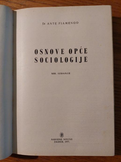 Osnove opće SOCIOLOGIJE - Ante FIAMENGO / Urednik : Đuro TEPIĆ