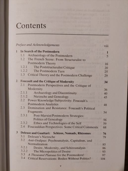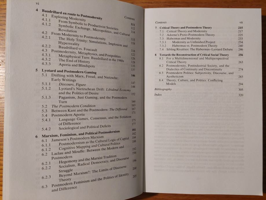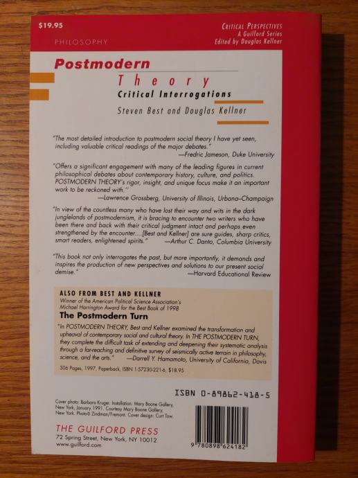 U ovom prigodnom izdanju autori sustavno analiziraju postmodernu teoriju kako bi procijenili njenu relevantnost za kritičku društvenu teoriju i današnju radikalnu politiku. Best i Kellner daju : Uvod i kritiku djela Foucaulta, Deleuzea i Guattarija, Baudrillarda, Lyotarda, Laclaua i Mouffea i Jamesona, koji procjenjuju različite doprinose i ograničenja postmoderne teorije; Rasprava o postmodernoj feminističkoj teoriji i politici identiteta; i sustavno proučavanje podrijetla diskursa postmoderne u povijesnim, sociološkim, kulturološkim i filozofskim studijama.