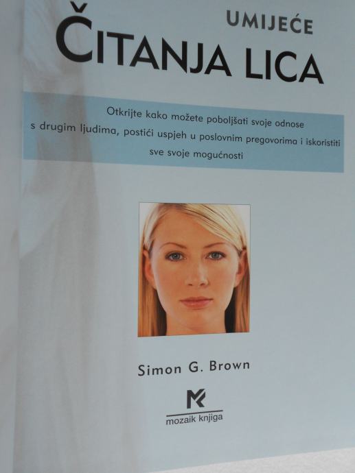 Prodajem knjigu "Umijeće čitanja lica" Simona G. Browna (izdavač "Mozaik knjiga" 2004.g.) - kako iskoristiti svoje mogućnosti i poboljšati odnose s drugima. Knjiga je tvrdo ukoričena, nova.