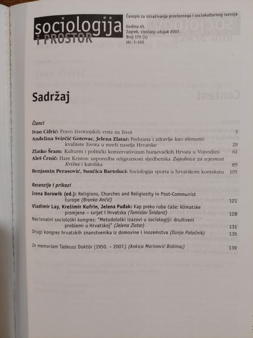 SOCIOLOGIJA i prostor - Broj 175 / 2007.