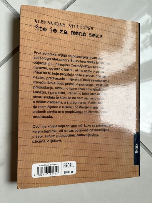 Prva popularno-znanstvena knjiga najpoznatijeg Hrvatskog seksologa Aleksandra Štulhofera pod nazivom 'Što je za mene seks' zbirk je kolumni objavljenih u Cosmopolitanu tijekom tri godine.