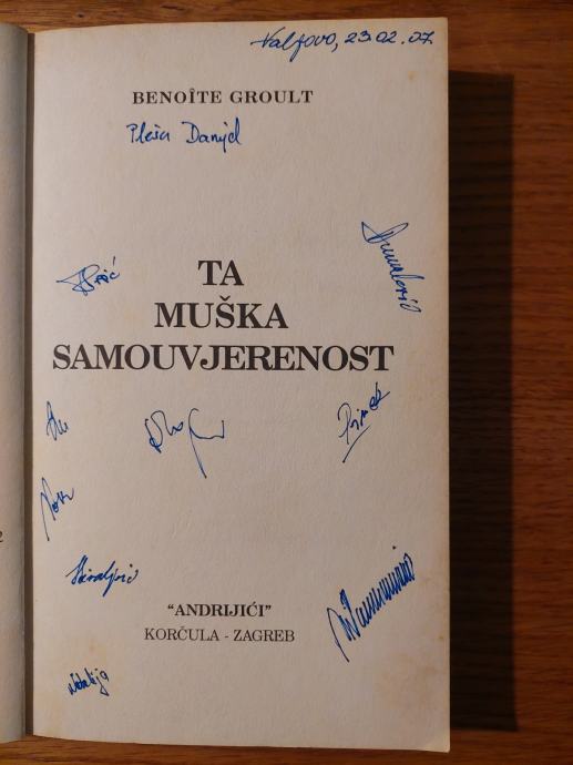 Na stranici koja sadrži naslov, autora, izdavača, godinu... - kemijskom olovkom - potpisi, datum, grad, godina... (prikazano na fotografiji)