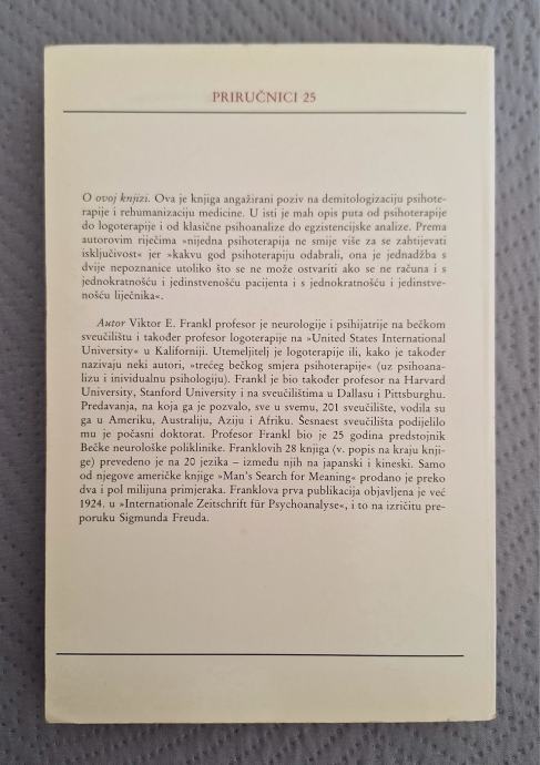 On tvrdi da je smisao moguće naći uvijek i do „posljednjeg daška života“. U knjizi se daje sustavan prikaz psihoterapijskog sustava koji je osnovao, prikazane su i obrazložene teorijske osnove, isto tako, terapijska i klinička praksa kod psihičkih poremećaja i egzistencijskih kriza smisla.