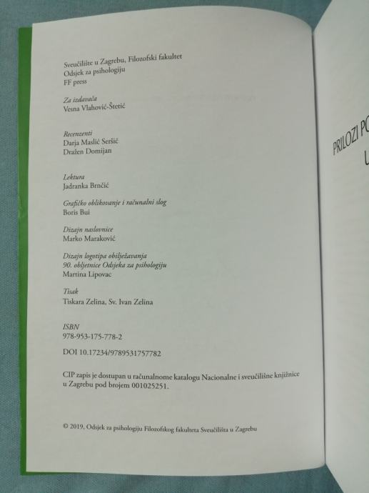 Nakladnik: Odsjek za psihologiju Filozofskog fakulteta u Zagrebu, FF press