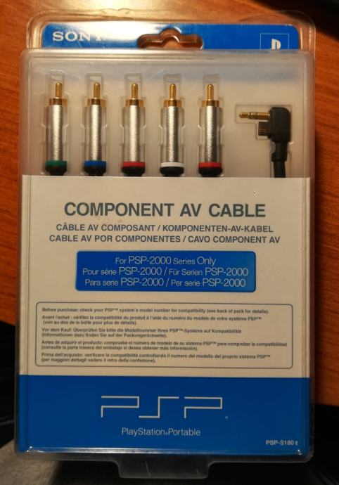 Komponentni kabel za spajanje PSP konzole na TV. Kompatibilan sa serijama 2000 i 3000. Novo.
