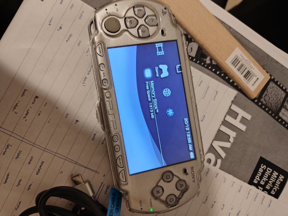 Modificirani sustav, memorijska kartica 8GB, podatkovni kabel, punjač, igre uključene.