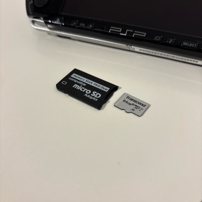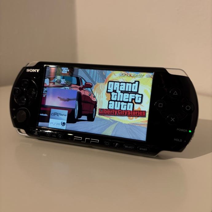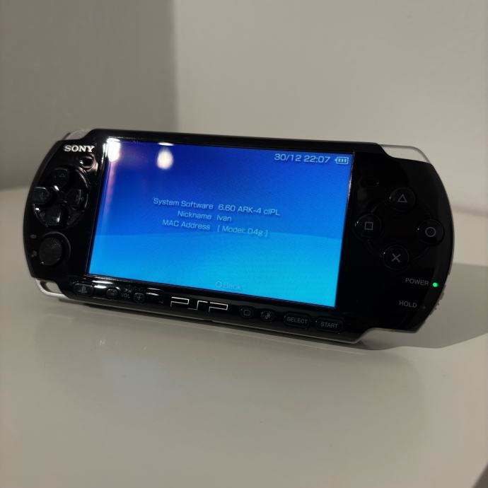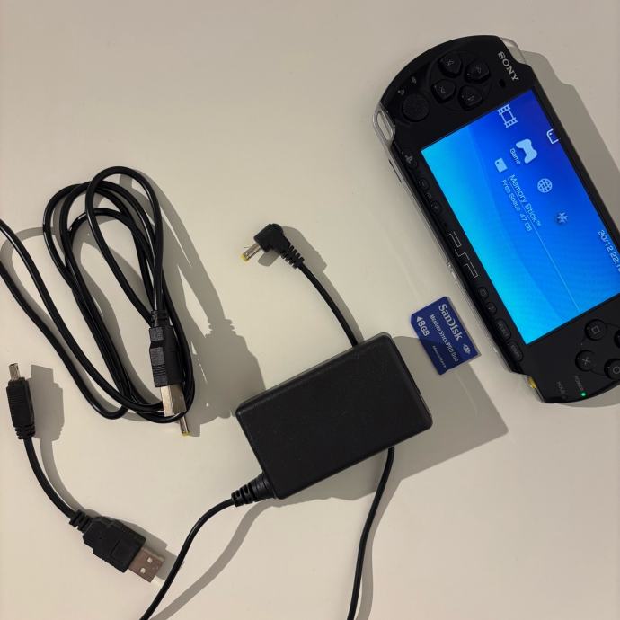 Na prodaju PSP, dolazi sa 64gb sd karticom i adapterom, originalnom 8gb karticom, mini usb kablom, usb kablom za punjenje, te punjačem. PSP je modiran te može igrati bilo koje igre s bilo kojeg izvora. Na konzoli sve radi kako treba, te baterija drži očekivano. Originalna kutija i uputstva.