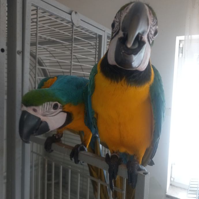 Super pitome Arearaune par (brat I sestra) ručno hranjeni stari 5 mj super pitomi sa DNA analizom Prstenovani I sa potvrdom o porijeklu cjena za par 2500 eura moguća prodaja ipojedinacno cjena 1300 kom